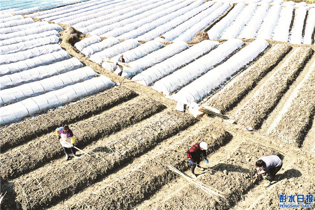 1月13日,在走馬鄉(xiāng)樓房村,村民正在忙著育天門冬苗。