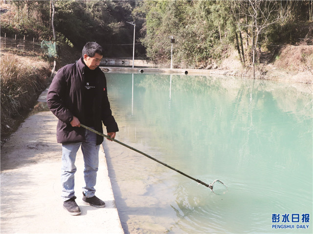 “你看,水清魚肥,活水養(yǎng)出來的魚,肉質(zhì)嫩得很。”1月18日,在郁山鎮(zhèn)清潔村4組,村民徐光全一邊清理魚塘里面的漂浮物,一邊向記者介紹魚塘里的“活水魚”。