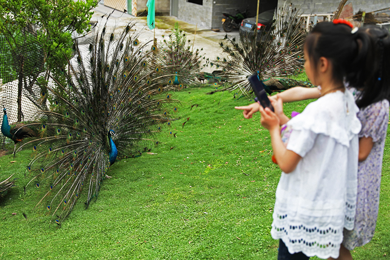近日,在紹慶街道臨江社區(qū)的孔雀養(yǎng)殖園,市民來到這里觀賞孔雀,樂享鄉(xiāng)村時光。