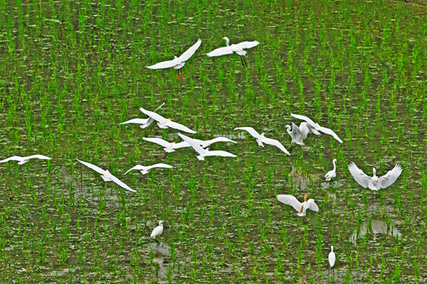 近日,在諸佛鄉(xiāng)復(fù)興村的的一片稻田里,前來(lái)覓食的白鷺在稻田上空展翅飛翔,鳥(niǎo)兒潔白的羽毛與碧綠的秧苗相映成趣,構(gòu)成一幅天然的山村畫(huà)卷。近年來(lái),越來(lái)越好的生態(tài)環(huán)境為各種鳥(niǎo)類(lèi)提供了良好的棲居條件,生動(dòng)展示了我縣加大生態(tài)環(huán)境保護(hù),促進(jìn)綠色發(fā)展的實(shí)際成效。