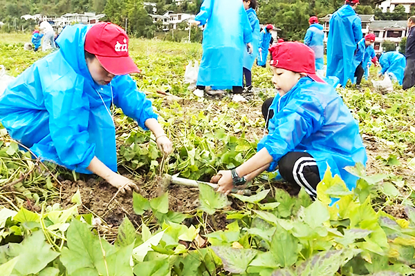 中國彭水網(wǎng)(融媒體記者 廖凱易 攝影)10月19日,彭水組織中小學生深入田間地頭開展“體驗農(nóng)耕文化 培養(yǎng)節(jié)約習慣”主題研學實踐活動,通過體驗采挖紅薯等方式,引導學生形成吃苦耐勞、勤儉節(jié)約的優(yōu)良習慣。圖為學生們在郁山鎮(zhèn)玉泉新村紅薯基地體驗采挖紅薯。
