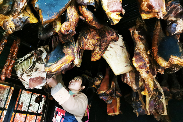 中國彭水網(wǎng)(融媒體記者 陳興盛 攝影)近日,梅子埡鎮(zhèn)佛山村村民張梅在掛臘肉。春節(jié)將至,又到臘肉飄香時(shí),各地群眾趕制臘肉、臘腸等臘味,備年貨迎接新年。