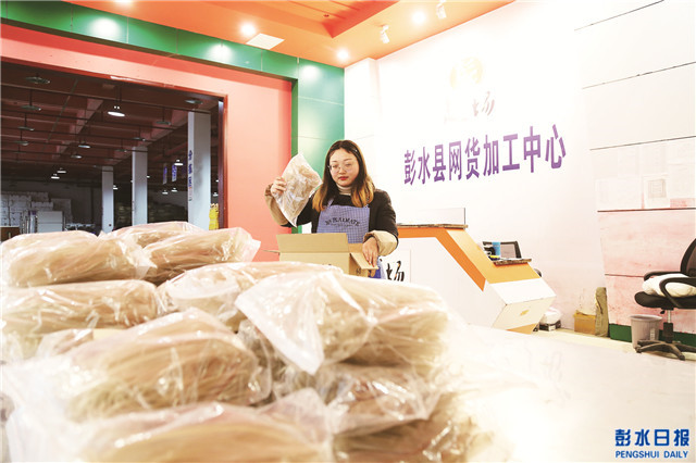 此外,彭水還大力加強(qiáng)縣鄉(xiāng)村三級(jí)電商體系建設(shè)、農(nóng)產(chǎn)品網(wǎng)貨品牌培育、農(nóng)村電商人才培訓(xùn)等,積極引導(dǎo)廣大農(nóng)民群眾網(wǎng)上銷售特色農(nóng)產(chǎn)品,為貧困地區(qū)“撬”開(kāi)網(wǎng)上大市場(chǎng),成為廣大農(nóng)民群眾脫貧致富的“新利器”。