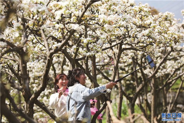中國(guó)彭水網(wǎng)(融媒體記者 趙 勇 攝影)3月13日,隨著氣溫回升,不少市民利用周末時(shí)光,走出家門(mén),踏青游玩,樂(lè)享春日好時(shí)光。圖為保家鎮(zhèn)一梨園內(nèi),市民正在花間拍照。