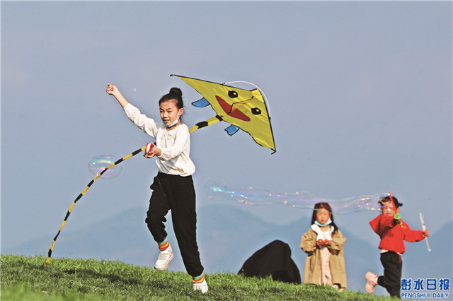 中國彭水網(wǎng)(融媒體記者 楊元忠 趙 勇 攝影)3月13日,在漢葭街道北斗星空夢想草場,市民們正在放飛風(fēng)箏。當(dāng)天,陽光明媚,不少市民紛紛走出家門,郊游、踏青、賞花、采摘,體驗春天的美好。