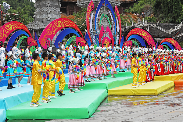 一百年輝煌歷程,一路頌歌一路夢(mèng);一百年崢嶸歲月,幾多風(fēng)雨幾多情。在這歡聚的美好時(shí)刻,萬(wàn)人同唱嬌阿依,萬(wàn)人共舞踩花山,上萬(wàn)觀眾共同體驗(yàn)這多姿多彩的民族風(fēng)情,共同見(jiàn)證這燦爛輝煌的民族文化,共同祝愿我們偉大的祖國(guó)越來(lái)越富強(qiáng)。