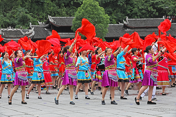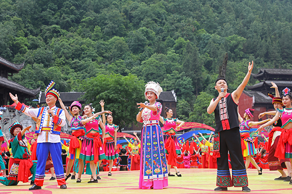 5月19日,2021·第十屆中國(guó)烏江苗族踩花節(jié)在蚩尤九黎城盛大開(kāi)幕。上萬(wàn)苗鄉(xiāng)兒女齊聚一堂,歡聚蚩尤九黎城,共赴踩花山節(jié),同唱嬌阿依,共舞踩花山,共同歡慶苗族民間盛大傳統(tǒng)節(jié)日。