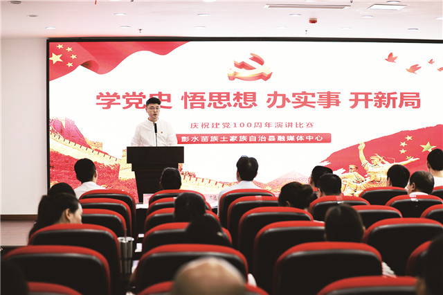 重慶彭水網(wǎng)(融媒體記者 冉江陵 周術軍 /文 趙 勇/圖) 7月6日,縣融媒體中心舉行“學黨史、悟思想、辦實事、開新局”演講比賽,回顧黨的光輝歷程,謳歌黨的豐功偉績,抒發(fā)黨員干部對黨的崇敬之情。