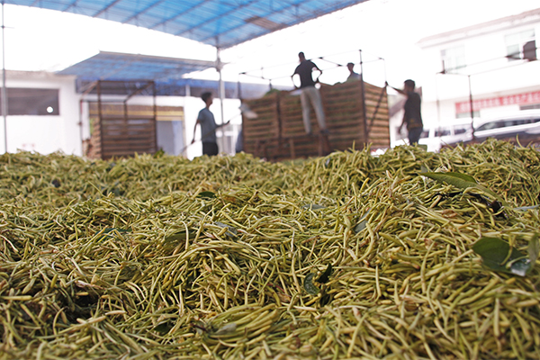 7月8日,金銀花基地,涼風(fēng)習(xí)習(xí)。一簇簇金銀花蕾隨風(fēng)搖曳,清香沁人心脾。300余名村民早早地就到了地里,忙著采摘金銀花?!安傻枚啵瑨甑镁投?,大家都干得起勁。”當(dāng)?shù)卮迕駨埞鸱家贿叢烧贿吪c記者交談。