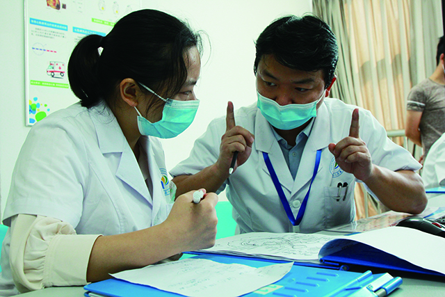 每周四下午,醫(yī)院還要開展業(yè)務(wù)講座,他們交替進(jìn)行業(yè)務(wù)講課,主要針對常見病、多發(fā)病的診斷、治療及預(yù)后的分析以及最新專業(yè)知識的共同學(xué)習(xí)、開展討論,提高當(dāng)?shù)蒯t(yī)院的整體業(yè)務(wù)水平。