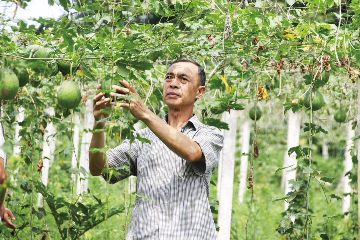“自我們村開(kāi)始種植瓜蔞后,我抽空都在基地干活,一年下來(lái)收入還可觀,一個(gè)月大概來(lái)基地干活七八天,一年在4000元左右,土地流轉(zhuǎn)了10多畝,一年多了四五千元的家庭收入?!闭诨貏?wù)工的村民李小滿(mǎn)說(shuō)。