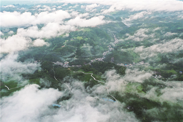 重慶彭水網(wǎng)(融媒體首席記者  趙 勇  攝影)8月7日,云?;\罩下的大同鎮(zhèn)山川、田野、交通、村莊,形成一幅幅美麗的生態(tài)畫(huà)卷。大同鎮(zhèn)平均海拔1300多米,以前,這里是遠(yuǎn)近聞名的產(chǎn)煤大鎮(zhèn),因過(guò)度采挖,對(duì)當(dāng)?shù)厣鷳B(tài)環(huán)境造成了不同程度的破壞。前幾年,當(dāng)?shù)卣懤m(xù)關(guān)停轄區(qū)內(nèi)所有大小煤礦,并依托當(dāng)?shù)睾0胃摺⑼恋仄秸葍?yōu)勢(shì),以綠色為發(fā)展底色,持續(xù)創(chuàng)新發(fā)展鄉(xiāng)村旅游、生態(tài)農(nóng)業(yè)等新業(yè)態(tài),促進(jìn)農(nóng)村一二三產(chǎn)業(yè)深度融合,讓曾經(jīng)的礦區(qū)變成了景區(qū),生態(tài)環(huán)境持續(xù)變好,生態(tài)產(chǎn)業(yè)持續(xù)發(fā)展,產(chǎn)業(yè)結(jié)構(gòu)不斷優(yōu)化,有效推動(dòng)了當(dāng)?shù)亟?jīng)濟(jì)社會(huì)高質(zhì)量發(fā)展。