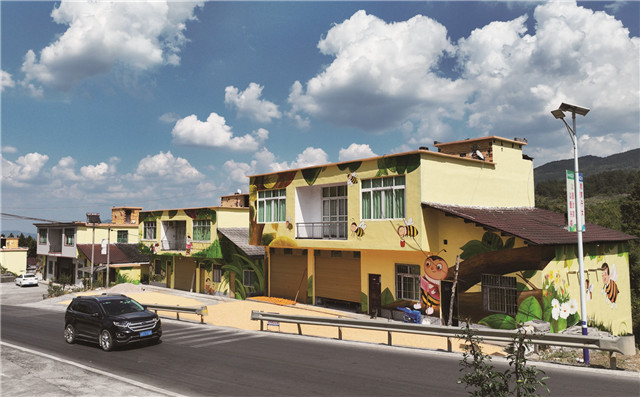重慶彭水網(wǎng)(作者:任 會)在靛水街道文武社區(qū),農(nóng)房外墻披上了“新裝”。墻體上繪就著蜜蜂、綠樹、鮮花……一幅幅鮮艷靚麗的墻體彩繪與周圍整潔的民居巧妙融合,相映成趣。