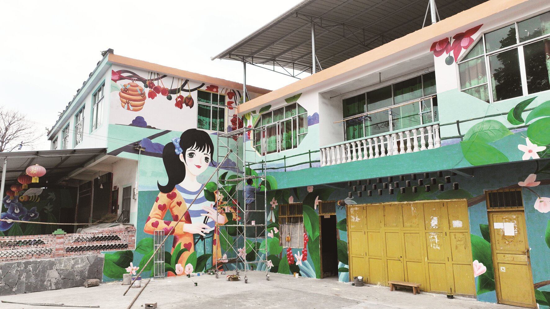 正在實(shí)施的“蜂文化”主題墻繪,讓文武社區(qū)的居民住房“穿上新衣”,蜜蜂、花朵、綠葉等一幅幅美麗圖案在墻面上栩栩如生。