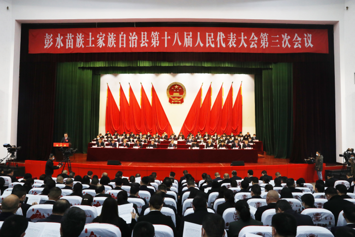 2月1日上午,彭水苗族土家族自治縣第十八屆人民代表大會第三次會議在縣民族會場隆重開幕。
