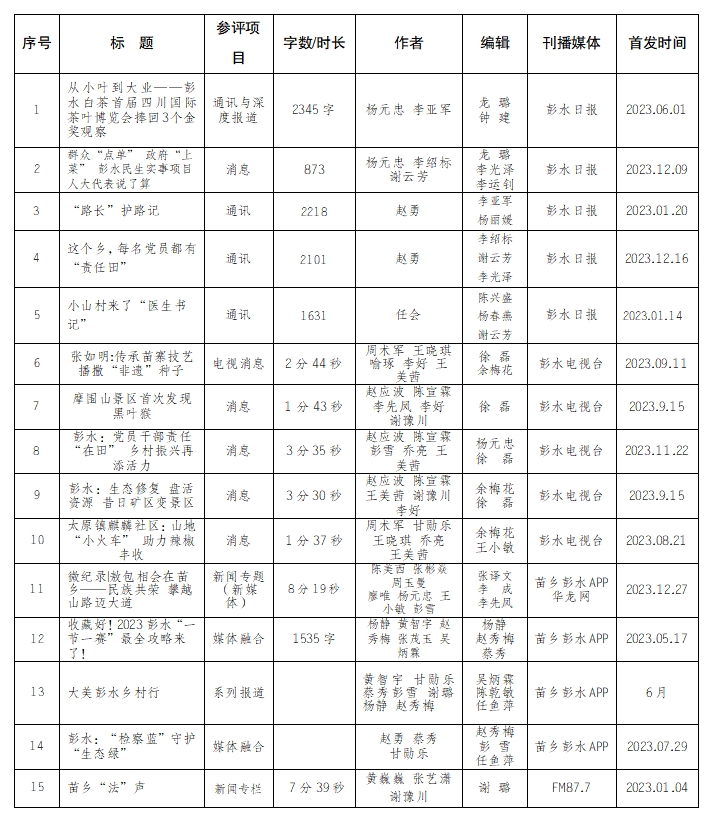 彭水苗族土家族自治縣融媒體中心第二十六屆重慶新聞獎擬報(bào)作品公示