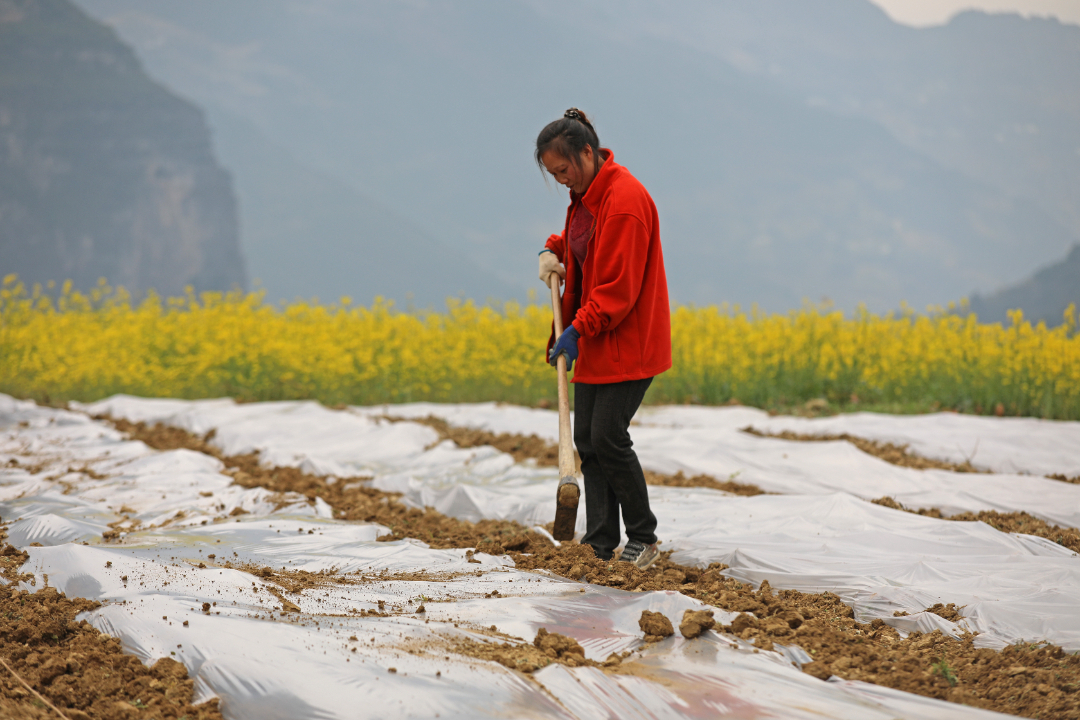 重慶彭水網(wǎng)(記者:趙 勇 陳興盛 任 會)時下,正值春暖花開的季節(jié),全縣各地的油菜花、李子花、桃花等相繼盛開。村民們搶抓農(nóng)時伴著花香忙春耕,翻耕田地、育苗覆膜、管護(hù)農(nóng)作物,田間地頭呈現(xiàn)出一派春意濃濃的農(nóng)忙景象。