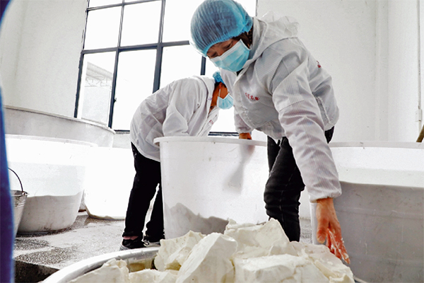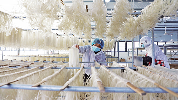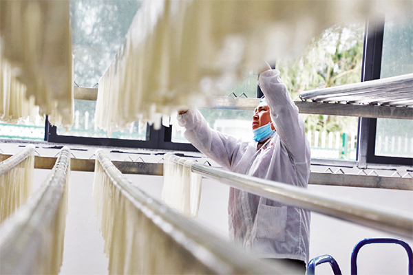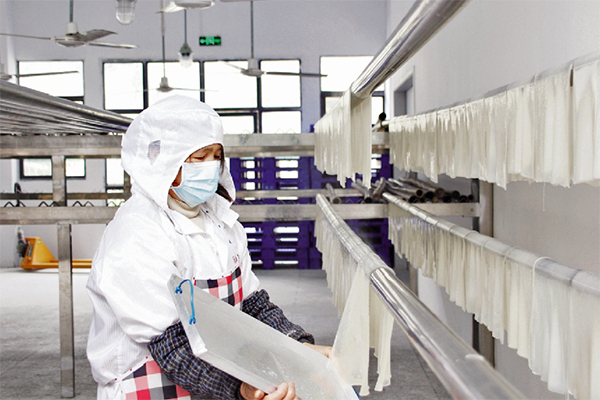 合作社用山泉水進行苕粉的生產(chǎn)加工,加工出來的紅薯淀粉純度白、亮度高、品質(zhì)好,苕粉細膩,入口軟、糯、香、滑,深受顧客喜愛。