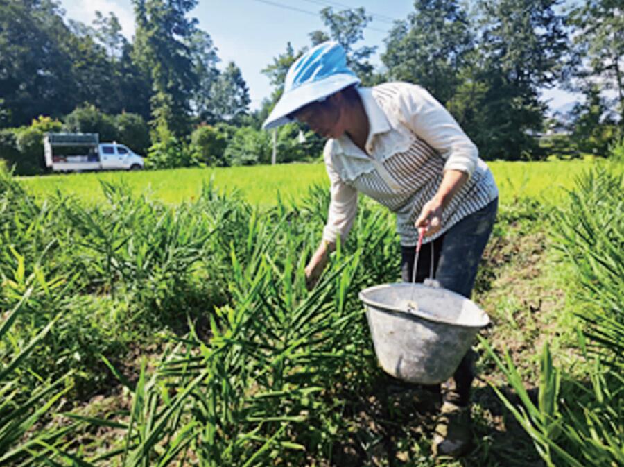 前些年,蔡登山一直在外務(wù)工,后來考慮到需要照顧年邁的父母,再外出務(wù)工不方便,就選擇回家創(chuàng)業(yè)?!翱粗亦l(xiāng)這些肥沃的土地荒蕪很是可惜,就想著在家發(fā)展農(nóng)業(yè),可以照顧父母的同時還可以帶動當(dāng)?shù)卮迕窬徒鼊?wù)工增收?!辈痰巧秸f,今年,他在村支兩委的引導(dǎo)下,結(jié)合當(dāng)?shù)氐臍夂?、土質(zhì)等實際情況,流轉(zhuǎn)土地種植了40余畝生姜,不僅提高了土地利用效率,還增加了在家勞動力的就業(yè)機會。
