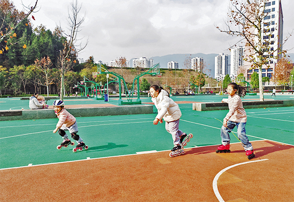 重慶彭水網(作 者:任 會)12月15日,陽光明媚,市民們紛紛走出家門,沐浴在冬日暖陽中,享受戶外健身運動的快樂。圖為彭水新城全民健身中心,小朋友們在玩輪滑。