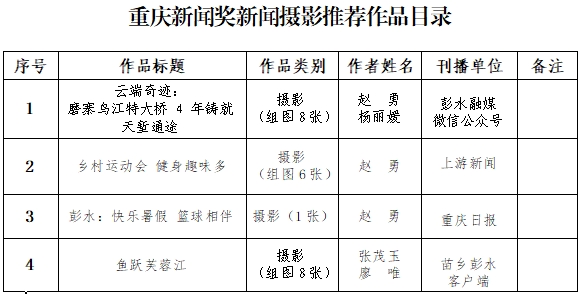 彭水苗族土家族自治縣融媒體中心 關(guān)于擬參評(píng)第27屆重慶新聞獎(jiǎng)(2025年度)新聞攝影作品初評(píng)的公示