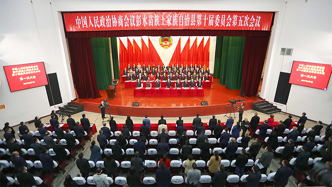 4月7日上午,中國(guó)人民政治協(xié)商會(huì)議彭水苗族土家族自治縣第十屆委員會(huì)第五次會(huì)議在縣民族會(huì)場(chǎng)隆重開(kāi)幕。來(lái)源:第 期2021-04-0713:57 -