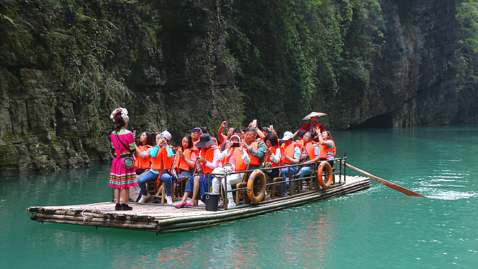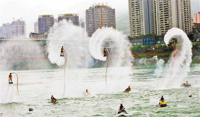 欣賞水上運(yùn)動(dòng),體驗(yàn)民族風(fēng)情。5月12日,第九屆中國摩托艇聯(lián)賽“太極水杯”重慶彭水大獎(jiǎng)賽暨中美澳藝術(shù)滑水精英賽在烏江之濱彭水縣城水域舉行。
